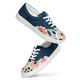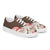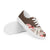 Our low-top lace-up sneakers are perfect for those who appreciate nature-inspired palettes and effortless style. Each pair features striking floral-patterned side panels where delicate creamy white and soft pink flowers are beautifully complemented by the grounding tones of deep brown leaves and stems, with subtle black details adding depth. This artistic composition flows seamlessly with the solid brown toe and heel sections, creating a look that's both inviting and refined.