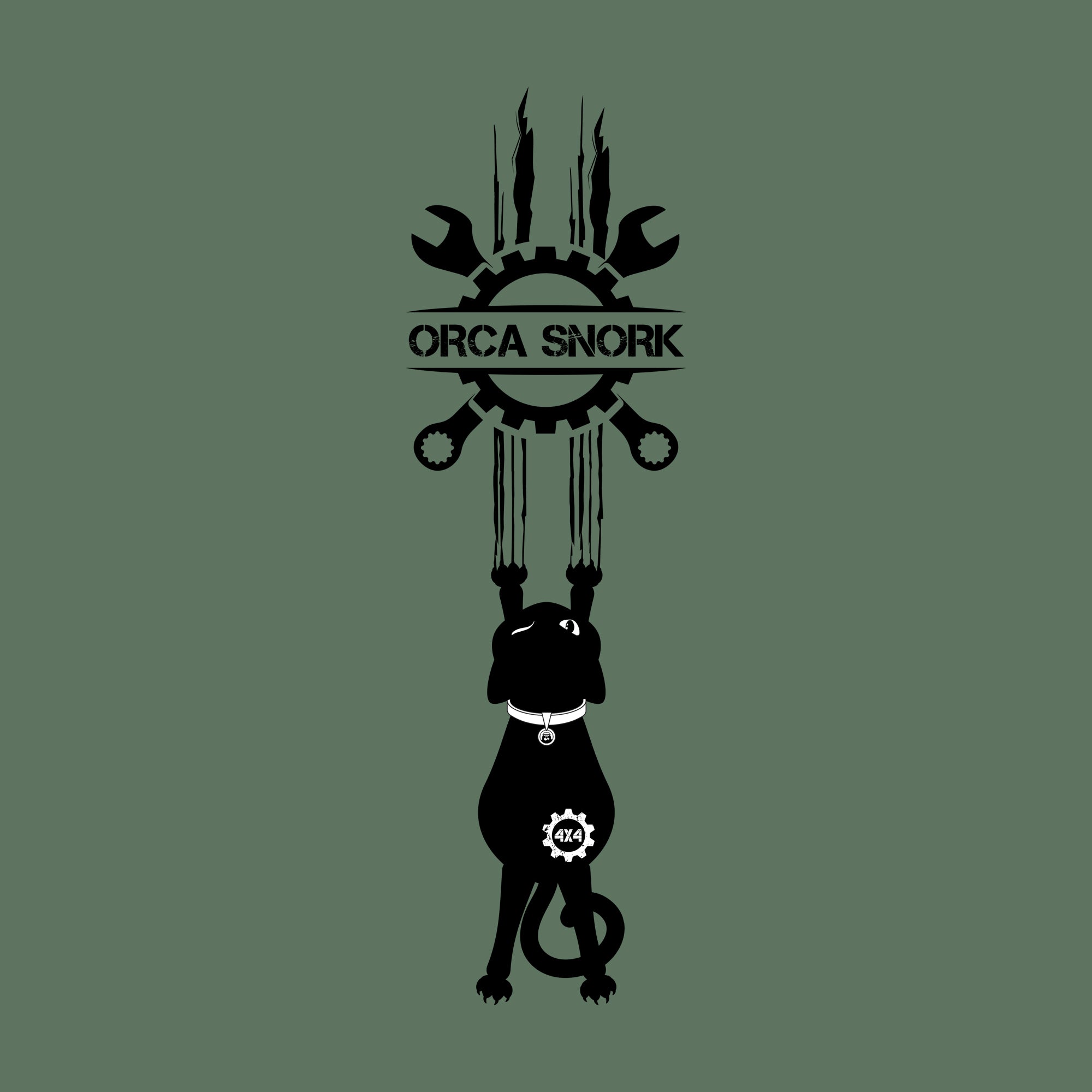 • Right Sleeve: Showcases the Orca Snork mascot cat, featuring fierce scratch marks and a subtle 4x4 gear tattoo encircled by a gear and twin wrenches—a symbol of the grit required to build, break, and explore.