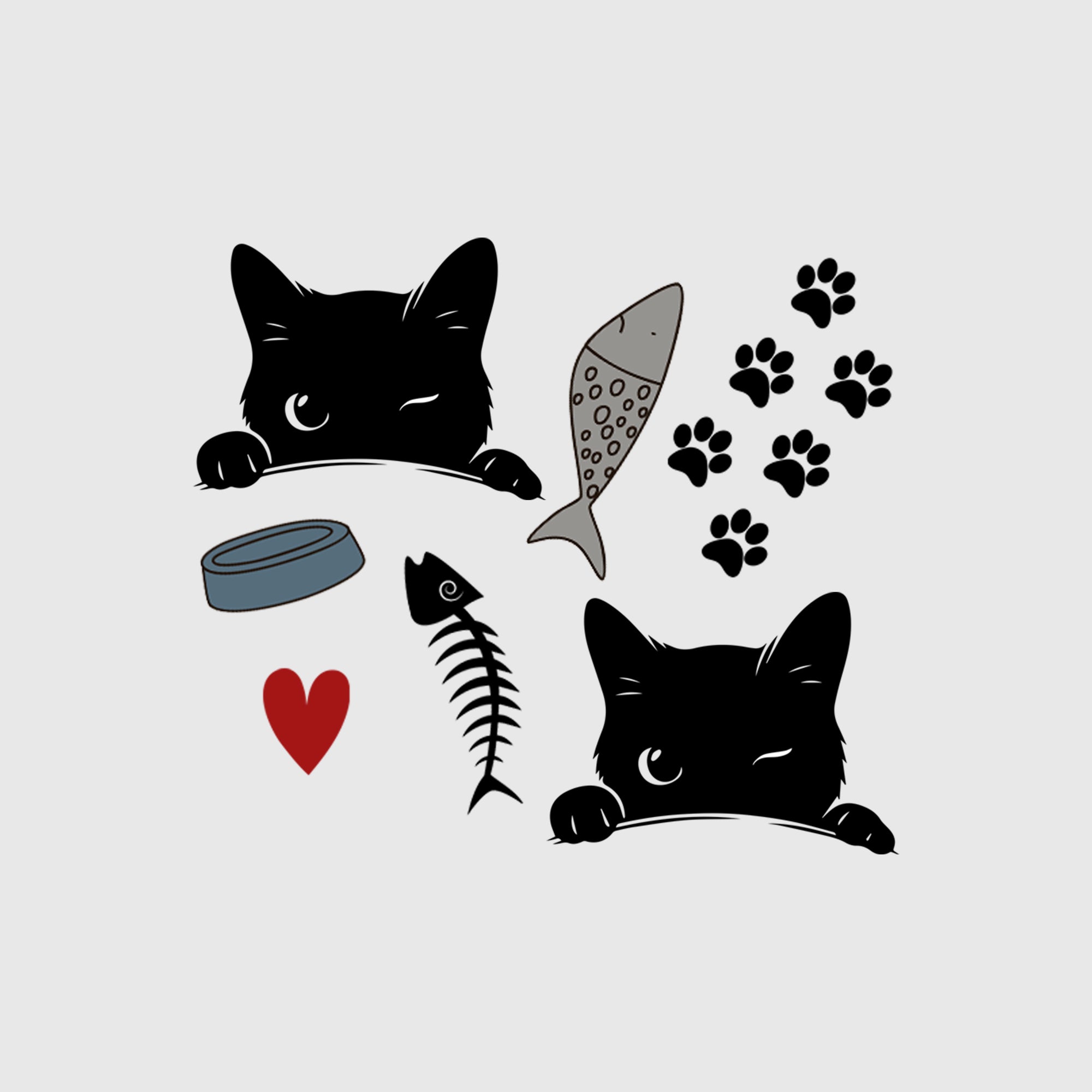 Whimsical Pattern: Enjoy the delightful mix of Orca, black paw prints, red hearts, blue cat bowls, black fishbones, and blue whole fish that make every step an adventure.